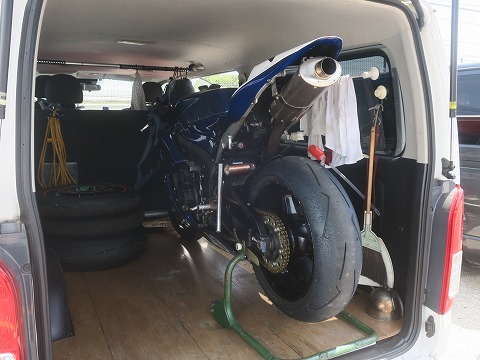 次回すぐに走行を開始できるようにタイヤを交換し終わったら、ハイエースに積込み。