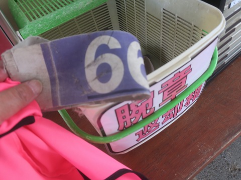 慣らしの場合、ピンク色のビブスを着て走ります。