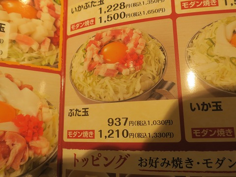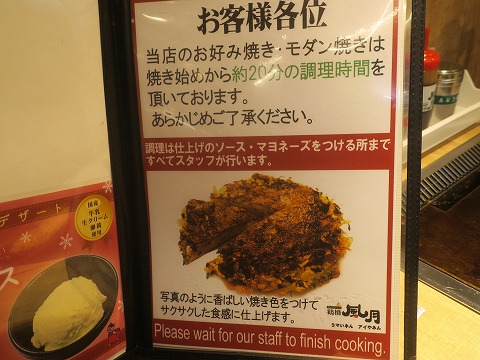 13:36 注文は 30分ほど待って店内に案内されました。 さて、注文は定番で”ぶた玉”。 当然、モダン焼きでお願いしました。 |