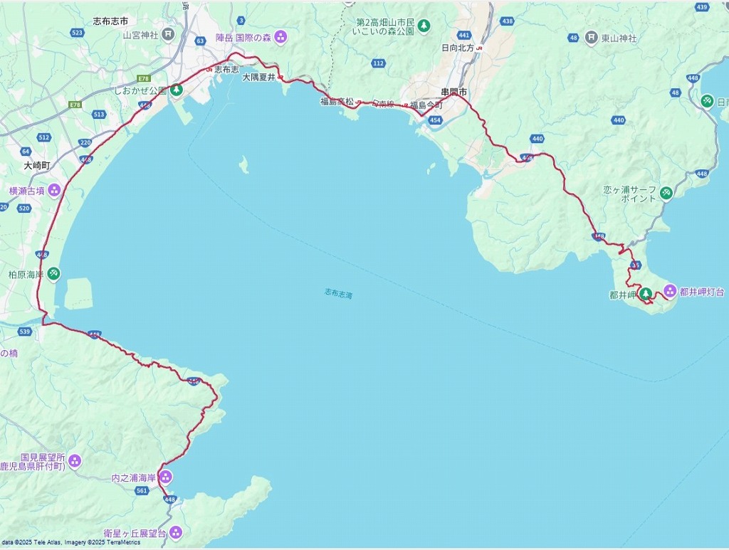 | 都井岬からの道程:都井岬〜志布志〜内ノ浦:72.72 km | |