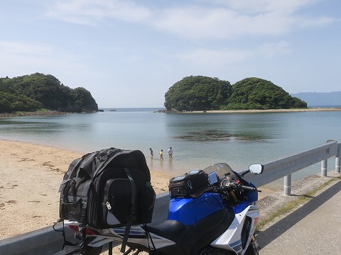 9:47 高松海水浴場に 国道448号線を東進して、途中にある高松海水浴場に寄り道。 沖に浮かぶふたコブの島が印象的で、ヨゴセ島と言うらしい。 2016年のツーリングの時にも立ち寄りましたが、今回も。 自分の記憶では、ここは小学生のときに、今日一緒に走っている従弟と訪れたことがあったと思います。 従弟に、『ここ懐かしいですよねぇ〜。』って話をしたら、 『俺は来たことない。』って言われました。 記憶違いでしたね。(笑) 小学生の時分、この高松海水浴場に来た時は、知り合いの海の家に泊まりました。 夕食にバケツ一杯のサザエのつぼ焼きを出してもらい、2〜3人で全部食べちゃった記憶が残っています。 その時にサザエを一生分食べた感じで、今はサザエを見ても、あまり食指が動きません。(笑) |