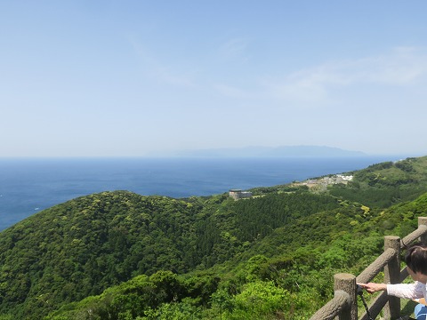 10:34 春霞の 駐車場に戻って、景色を眺めてみます。 都井岬の名前の通り、海に突き出ているので、目の前は270°近い海原が広がっています。 南西の方角で対岸に春霞の中うっすら見えるのは、これから向かう大隅半島です。 |