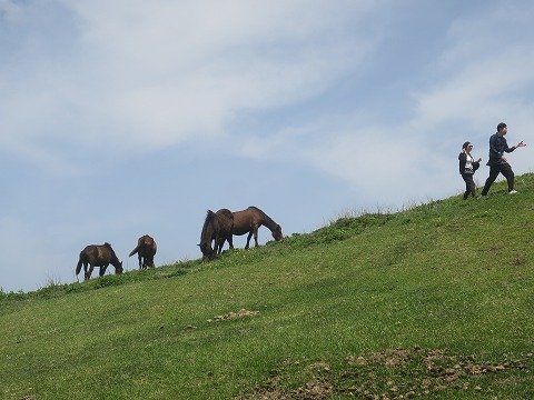 11:05 結構います 御崎馬は、あちらこちらにたくさんいます。 御崎馬はもともと、江戸時代藩営牧場としてスタートし、放牧飼育され、半野生化したものだそうです。 現在は100頭ぐらいいるって、係の人が言ってたかな。 |