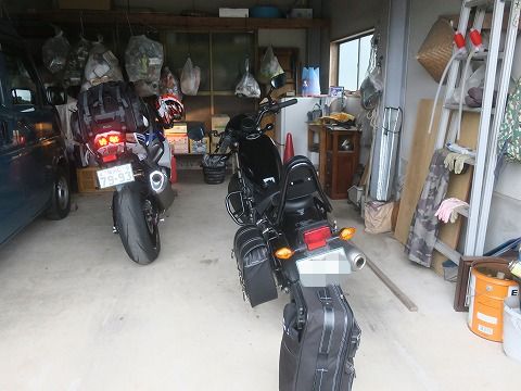 16:57 お世話になります。 今年のゴールデンウィーク ツーリングは2日目の夕方に鹿児島県の鹿屋市にある親戚の家までやってきました。 事前に連絡してあって、今晩と明日の晩泊めてもらう予定です。 夜露に濡れない様、親戚のクルマを外に出して、車庫にバイクを駐めさせてもらいます。(笑) |