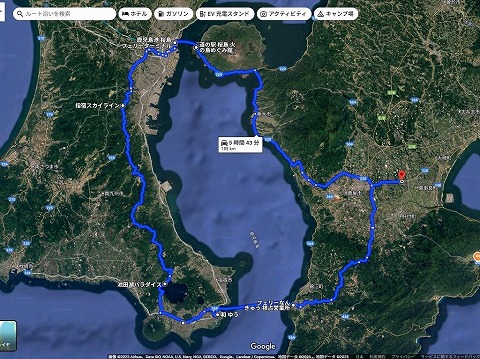 下のgoogle map、今日の予定でした。