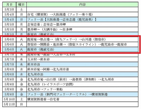 最初の計画だと、今日5月6日は従弟と一緒に錦江湾をグルっと周遊する予定でした。