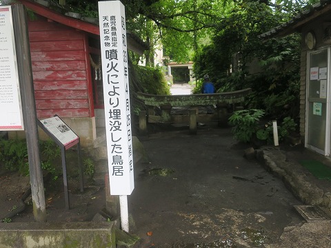 黒神埋没鳥居は1914年に発生した桜島の大正大噴火により噴出した溶岩により上部を残して埋もれた鳥居です。