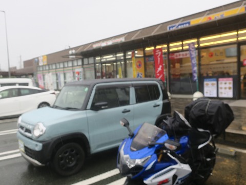 13:06 熊本市を発つ GWツーリング後半の6日目です。 今日の晩には北九州の新門司港からフェリーに乗って横須賀に帰ります。 朝から雨が降っているので、ホテルをレイトチェックアウトして、昼に駅近くで熊本ラーメンを食べて、GSX-Rが駐めてあるホテルの駐車場まで戻ってきました。 それでは、雨はあきらめて出発しましょう。 |