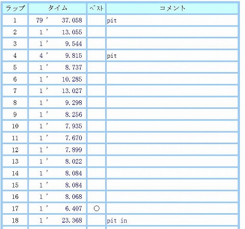 11:58 ピットに 5周のレースが終わって、ピットに戻ってきました。 自分、後ろの方のピットで止まってます。 |