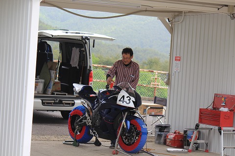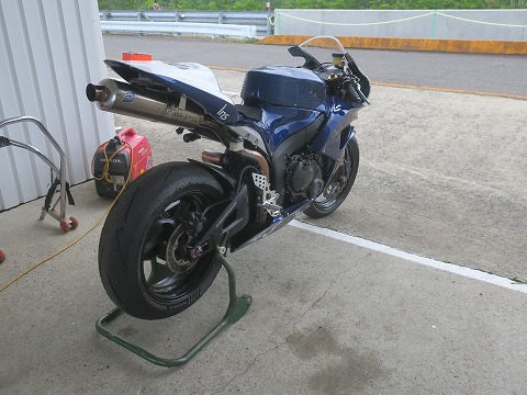 8:30 走行準備 9時から走行出来るんですが、CBRはタイヤを暖めなきゃならないので、さっさと準備をしちゃいましょう。 |