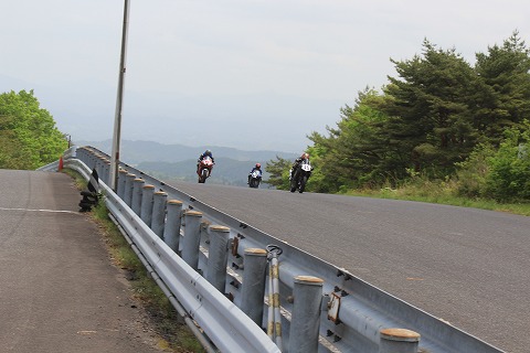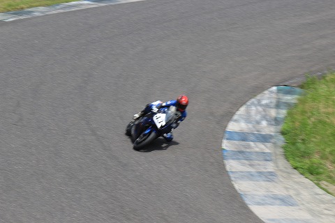10:16 伏せましょう 続いて、通報”すり鉢”と呼んでいる6コーナーからの立ち上がり。 写真見たら、伏せてないね。 自分では伏せているつもりだったけど・・・・・。 (-_-;) すり鉢から便所前のヘアピン(9コーナー)まで、2速〜3速〜4速に入るまで、フル加速するので、伏せるのが原則。 写真に撮ってもらはないと、なかなか気付かないところです。 |