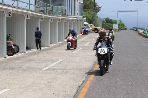 11:37 続いて ピットに戻ってきました。 もう11時半を過ぎているんですね。 このあと、すぐに模擬レースになります。 タイヤウォーマーを巻く時間もなく、レース走行できる分のガソリンを入れたら、コースインしてグリッドに向かいます。 |