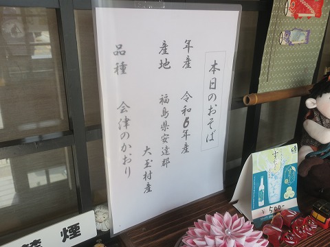 13:30 こだわり お会計を済ませて店を出るとき、入口にあるのを気付きました。 そば粉にもこだわっているみたいです。 蕎麦が美味しかったのも納得。 |