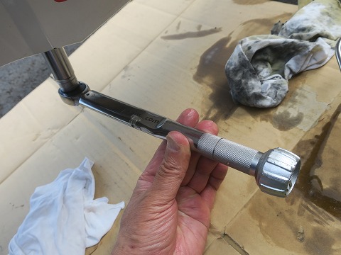 新しいワッシャでドレンボルトを取り付けたら、トルクレンチを使って規定のトルクで締め付けます。