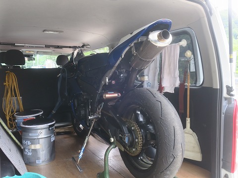 15:03 オイル交換準備 先週GSX-Rのオイル交換をしているときに、「あっ、CBRのオイル交換もしなきゃ。」とおもい今週末はCBRのオイル交換をします。 CBRは今年の冬にオーバーホールをしてから、4月にツクバ―サーキットで慣ら走行をして、その後エビスサーキットの走行会を走りました。 距離にしたら 100kmくらい走行しました。 次回の練習走行からキッチリ回したいので、ここで慣らし後のオイル交換をしておきます。 自宅でCBRのオイル交換するときは、排気音がうるさいので暖気ができません。 それなので、多少の排気音がうるさくても大丈夫な横浜横須賀道路のインター近くまでハイエースで運んで行って暖気をしています。 毎度の整備記録です。 すまんね。 |