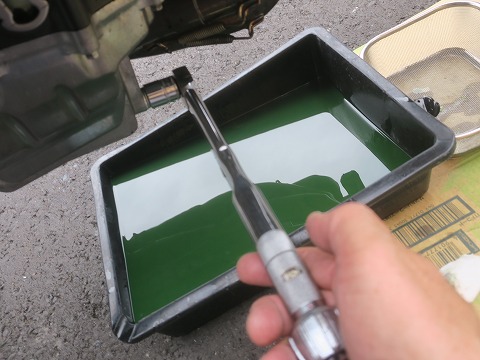 15:26 オイルの色は ドレンボルトを緩めて、オイルを抜いていきます。 ちょっと濁っているけど、ほぼ新品時の緑色。 流石に 100kmしか走ってませんからね。 勿体ないと言ったら勿体ない、けどサーキット走るバイクなんて、そんなもんでしょう。 でも、こうして記事を書いていたら、このオイル GROMとか発電機に再利用すればよかったね。 もう処分しちゃったので、時遅しだけど。 |