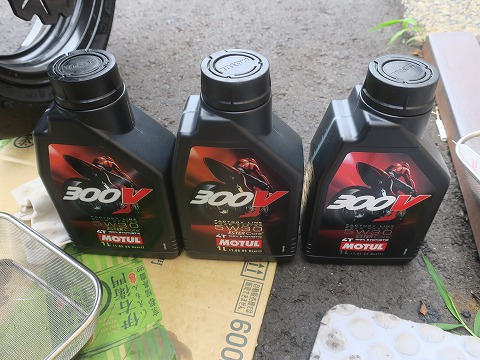 15:53 オイルを準備 交換するオイルは、いつものMOTUL 300Vの 5W-30。 バイクに乗り始めた学生の頃は高くて買えなかった。 今なら買える。 高いけど。 大人買い出来る。 必要なオイル量は2.5リットルくらいです。 |