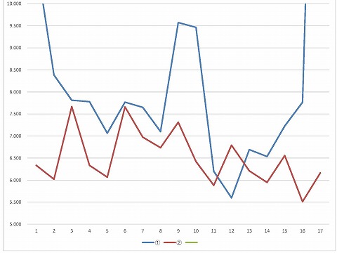 9:40〜10:00 B2クラス 2本目の走行が始まりました。 グラフを観ると、1本目より2本目の方が平均的にタイムがイイですね。 これはいつものことです。 月に1回くらい走るだけじゃ、やっぱり1本目からペースは上がらないですね。 それでも、オーバーホールしたエンジンの調子が良くて、全体的にトルクが厚くなった感じで、いつもよりペースがいい感じです。 シケインになるアジアコーナーの2つ目の立ち上がりでは、軽くフロントが浮いてきます。 これはオーバーホール前のエンジンより明らかです。 トルクがあって気持ちイイです。 ヘルメットの中でにやけています。 (^_^)v 前半はほぼコンスタントに6秒台で周回 後半になって、コースが空いてきたタイミングで5秒台が3回。 ベストはやっぱり終盤の16周目で5秒5。 1本目より1/100台ですが少しだけ更新できました。 17周目にチェッカーが振られて、ピットインします。 |