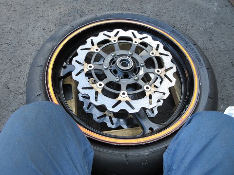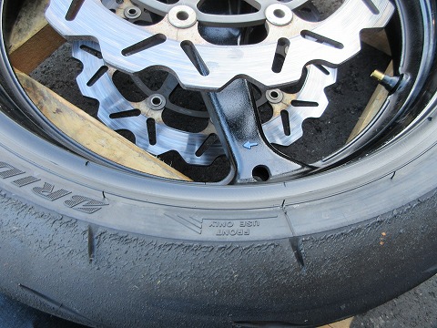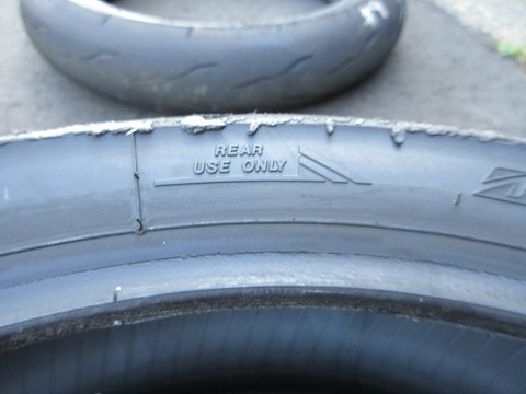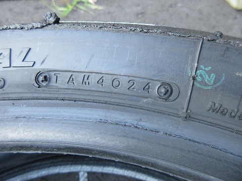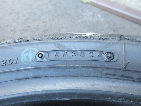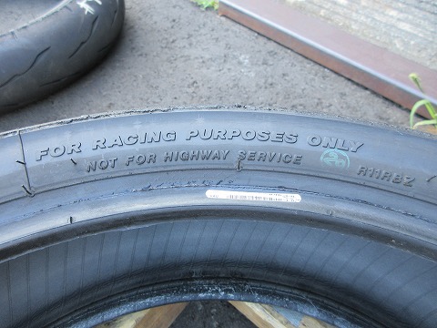 16:29 刻印を タイヤを確認。 ”FOR RACING PURPOSE ONLY”の刻印がしびれますね。(笑) |