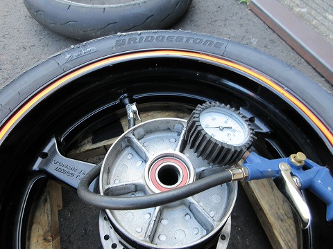 16:55 エアーを入れたら ビートが上がったら、エアーバルブのムシを取付けて、エアー圧を調整します。 この後、ホイルバランスを取ります。 (写真撮り忘れ) ( ̄▽ ̄;) |