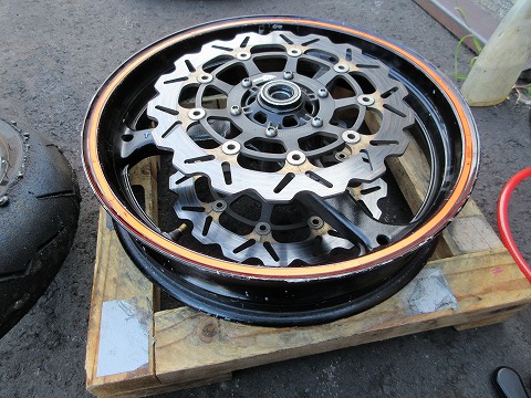 17:10 タイヤを外した 続いて、フロント タイヤの入れ替えをします。 すでに古いタイヤは外しました。 |