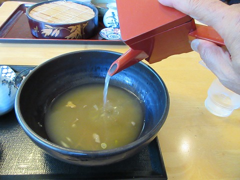 12:00 最後まで ズズッと食べちゃいました。 最後は蕎麦湯を入れて。 辛味大根が残っていて、最後まで爽やかですね。 暑くなるこの季節にピッタリの蕎麦ですね。 |