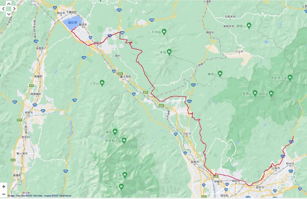 午後の道程: 上諏訪温泉 〜八ヶ岳南麓 〜 小淵沢 〜 甲府市 〜 山梨市:120.96km