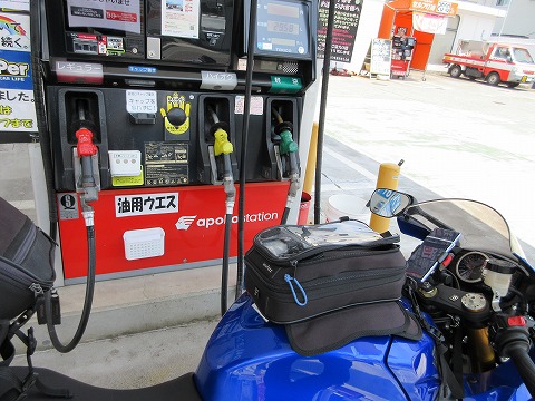 市街地を走っている間に、ガソリンを給油しておきます。