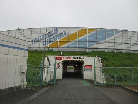 6:03 筑波サーキットに到着 6時に少し間に合わなかった。 1コーナー下の地下トンネルを通って、インフィールドに入ります。 |