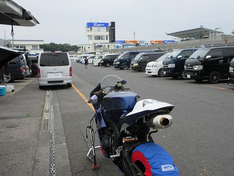 6:05 いつもの場所に ハイエースをいつものピットの対面にあるS字裏に駐車しようと思ったら、ほぼ満車。 一番端の廃オイル置き場の横にどうにか駐められそうなので、今日はここで。(笑) |