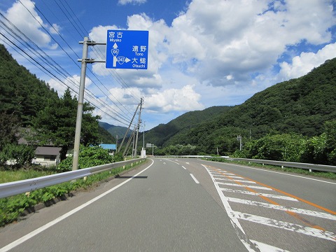 14:32 遠野ストレートに 宮古市から遠野市に入り、間もなく山間部から市街地です。 その前に現れるのが、自称”遠野ストレート”。 暑いですが爽快です。 |