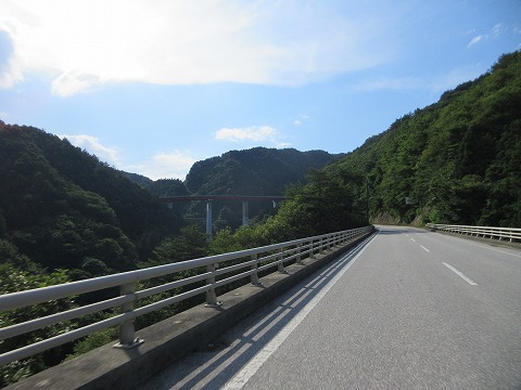 14:08 旧道は 旧道の方に入りました。 自動車専用道が出来て、旧道の方はガラガラ。 沿線脇に残った住居もあるので廃道にはなりません。 交通量はほとんどなく快走路、気持ちいいです。 |