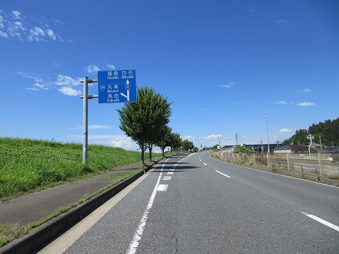 10:07 国道349号をロスト 国道349号線を南下して角田市まで到達したら、国道113号線と交差して国道349号線をロストしました。 国道113号線との重複区間だったようで、この区間では国道349号線は道路看板から消えているみたいでした。 自分は道をロストしたので、Google mapにちょっと先の国道349号線を目的地に入れて、ルート案内をトレースし国道349号線に復帰できました。 阿武隈川は福島県の西郷村を水源地として福島県内の内陸部を北上して宮城県に入り仙台市の手前南側にある岩沼市で太平洋に注ぎます。 なので、今は阿武隈川を遡る形で走っていることになります。 この区間の国道349号線は、阿武隈川の堤防の上を走る形です。 阿武隈川は写真の左手になりますね。 国道番号の看板は日焼けして、数字が見難いです。(笑) |
