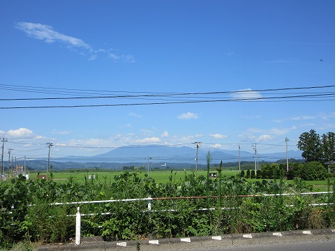 9:40 蔵王連峰を しばらく進むと国道は水田の中を走ります。 ちょっと退屈なので、右手に見えている山の写真を収めておきましょう。 あの山群は蔵王連峰じゃないかな。 5月のゴールデンウィークくらいに来ると、まだ雪が残っていて奇麗でしょうね。 たぶん。 |