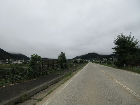 15:56 雲がかかって コンビニで液体を仕入れた後、湯田中温泉の市街地に向かいます。 正面は今走ってきた国道299号線が走っている志賀高原だけど、雲がかかって山体はまったく見えませんね。 |