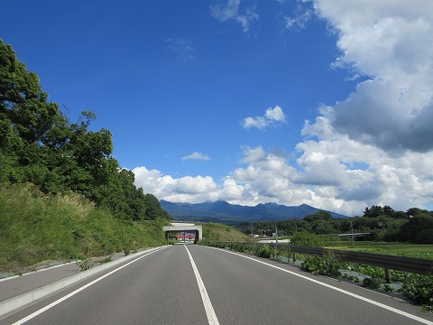 11:52 中部横断自動車道で 中部横断自動車道を南下中。 前方に八ヶ岳連峰がありますが、ここも上の方は雲に隠れて見ることができませんでした。 晴れてはいるけど、雲多め。 |