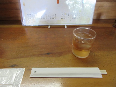 11:03 注文は お一人様の自分は店の入口から右手の5席ほどあるカウンター席へ。 冷たいそば茶とお箸、おしぼりが運ばれてきたところで、注文します。 カウンター席の前はガラス張りになっている打ち場。 蕎麦が供されるのを待っている間、蕎麦を打つのを見ることが・・・、今日は打っていませんでした。 (-_-;) |