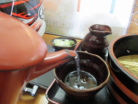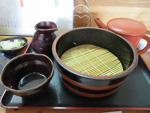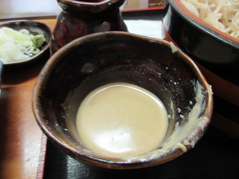 1130 最後はそば湯で 最後はそば湯で〆ます。 最初は、残ったくるみだれで割って。 くるみだれを飲んだら、そば湯だけで。 そば湯は、別製ではなく、実際にそばを茹でたゆで汁じゃないかな。 こってりしたポタージュの様なそば湯も美味しいですが、暑いときはさっぱりしたゆで汁の方が好みです。 |
