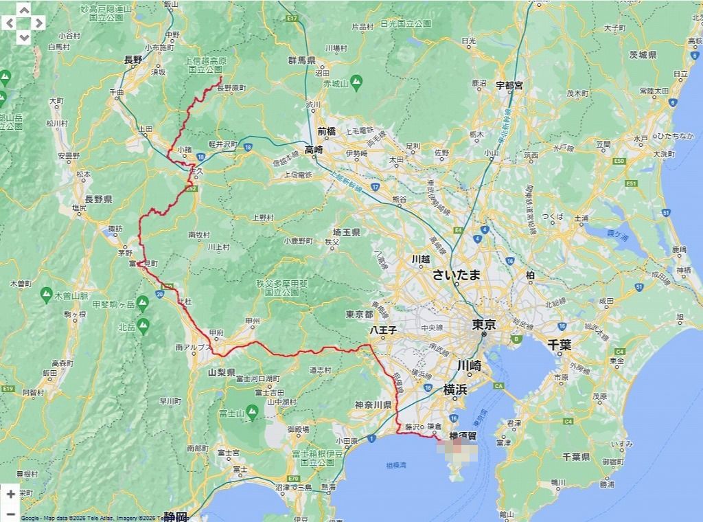 | 午後の道程:東御市(ふるさとの草笛)〜湯ノ丸高原〜嬬恋パノラマライン〜道の駅 草津 〜 嬬恋パノラマライン〜湯の丸高原〜東御市〜千曲ビューライン〜中部横断道路〜立科スカイライン〜白樺湖〜大門街道〜八ヶ岳エコーライン〜八ヶ岳ズームライン〜中央道〜圏央道〜国道134号線〜横須賀(自宅):408.85km | |