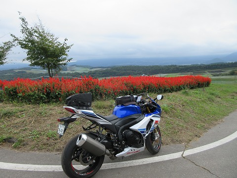 13:10 浅間山を つまごいパノラマラインを南西に走り花が植えられているところがあるので、バイクを駐めて写真を撮ります。 ”田代花壇前”って名前が付いているんですね。 晴れていれば正面に浅間山を見ることができます。 先週も、今週も見えません。 普段の行いが悪いとは自覚していませんが・・・。 |