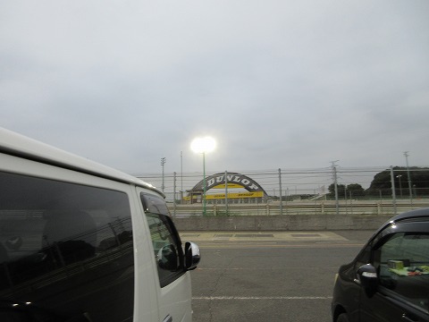7:01 いつもの場所は 券売所からパドックを眺めると、台数少なっ! 左手のピット側はほぼほぼ埋まっていますが、いつも自分が駐めている右手のS字裏は数台しか駐まってませんね。 |
