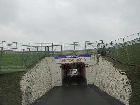 6:12 筑波サーキットに 約10分遅れで筑波サーキットに到着。 1コーナー下の地下トンネルをくぐって、インフィールドに入ります。 |