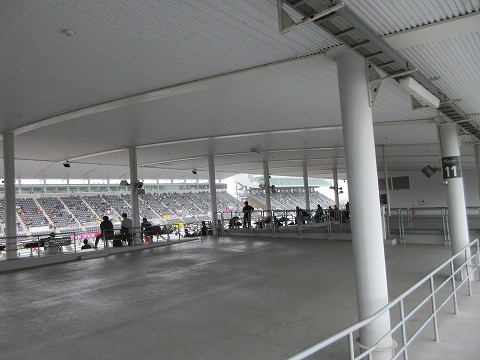 パドックをウロウロしたら、ピットの上の観戦スペースへ。