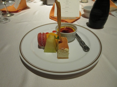 デザートは、クリームブリュレとチーズケーキ、マカロンとフルーツです。