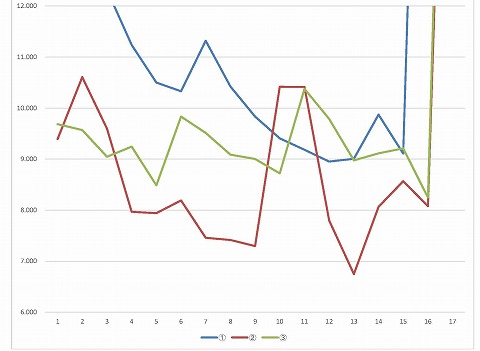 10:05〜10:25 B2クラス 10時5分になって、今日2本目の走行です。 気温も上がって10℃を越えてきて、路面温度も13℃と極端に冷たくないので、ある程度のグリップは期待できそうです。 1本目の走行が(タイムが)酷かったので、もう少しペースを上げて走りたいと思います。 1〜3周くらいは様子を見て。 4周目くらいからペースを上げます。 4周目からは基本7秒台で周回。 10周目、11周目はイエローフラッグでも出ていたのかな? (記録がなかったので、今となっては理由がわかりません) 12周目からペースを戻して、13周目にこの走行のベストで6秒7。 その後も走行を続けますが、疲れちゃったのかな、8秒台のタイムで3周回して、17周目にチェッカーが出て、この回の走行は終了でピットインします。 |
