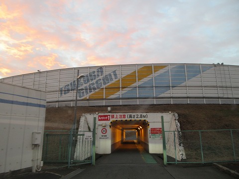6:47 筑波サーキットに 自宅を出発して、2時間10分で筑波サーキットに到着。 東の空がオレンジ色に染まっています。 ちょうど日の出時刻に到着しました。 普段は4時に出発して6時到着で2時間。 今日は2時間10分なので、少し余計に時間がかかりましたね。 それでは、1コーナー下の地下トンネルを通って、インフィールドに入りましょう。 |