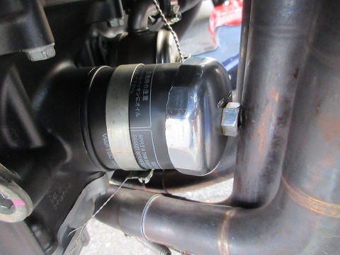 7:25 純正のフィルターレンチは 記事にも書きましたが、今年のシーズン初めにエンジンをオーバーホールしました。 慣らしが終わって6月にオイル交換したんですが、その時にオイルフィルターも交換しようと思ったら、自分が持っているAP(アストロ プロダクツ)のオイルフィルターレンチが隙間に入りません。 以前乗っていたCBRときは、APのフィルターレンチが入ったんですよね。 APのフィルターレンチが大きすぎるのかと思って、前回K2Yに寄ったときに、余分のHONDA純正のフィルターレンチを借りてきました。 アンダーカウルを外したタイミングで、純正のフィルターレンチが使えるか確認したら・・・・。 ダメだね。 エキパイが当たっちゃって、フィルターレンチが回せません。 仮に無理して外せたとしても、取り付けるときにトルクレンチが入るスペースがありません。 フィルターを外すためには、エキパイを外さないとダメですね。 |