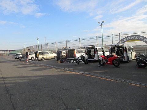 8:23 増えた ライダースブリーフィングを終えて、ハイエースのところに戻ってきました。 クルマ増えたな。(笑) シーズン中にくらべれば全然だけど。 |