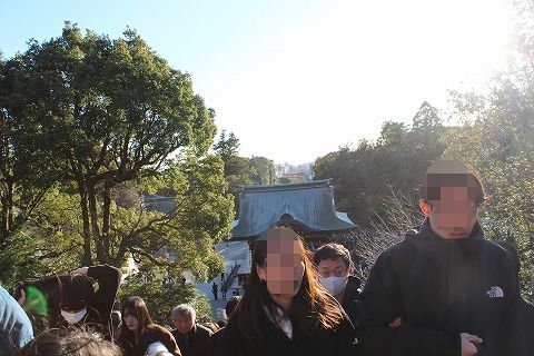 15:21 お参りします。 本宮の入口から、先に進みます。 この先でみんなお参りをしているので、なかなか進みません。 ますが、撮影禁止なので、写真はここまで。 デジカメの撮影時間のデータを確認したら50分くらいかかってますね。 去年は午前中で40分ぐらい並んだので、正月2日は午後の方が少し混んでいるのかな。 |