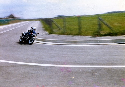Gパンなので、ヒザをすらないようにと、ヒザを引っ込めているが、本人が思っているほどバンクしていない。(爆)